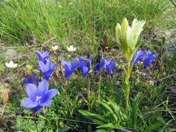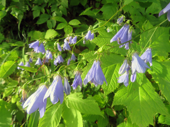 | チシマギキョウ | 岩桔梗 | 〃 | 青紫 | 〃 | 高さ=5~15cm、花=4~5cm。イワギキョウに似ますが、大きめの花は下向きに咲き、花に毛があるなどの違いがあります。 | 〃 |