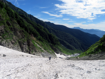 | 三国境直下の雪渓 | 三国境 → 小蓮華山 | 〃 |