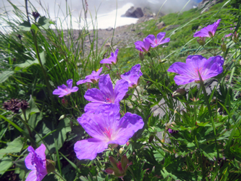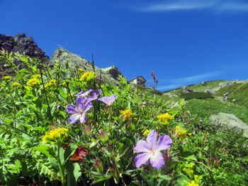 | ハクサンイチゲ(キンポウゲ科):葱平(ネブカッピラ)。 ウサギギク(キク科) | ハクサンフウロウ(フウロウ科) : 〃 | |