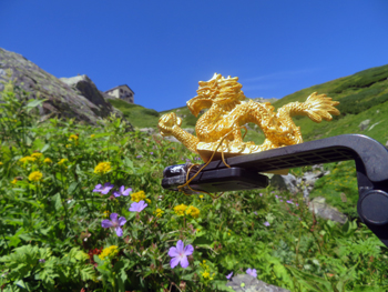・ 夕方、展望の利く場所まで、花を見ながら散策。 夕日を撮影後、小屋に戻り、17時からの夕食迄、一休み。