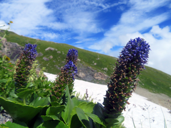 | イワギキョウ : 村営頂上小屋直下 | ウルップソウ(ゴマノハグサ科) : 〃 | ウルップソウとミヤマキンポウゲ : 〃 |