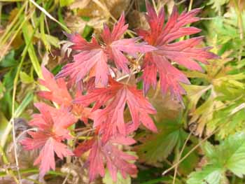 | 紅葉したヨツバシオガマの葉 | 紅葉したミヤマキンバイの葉 | 三俣蓮華岳 頂上 : 2,841m |