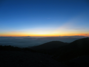 ・ 4時半に起床、5時にお弁当を食べ、5時半の日の出の写真を撮ってから、出発。