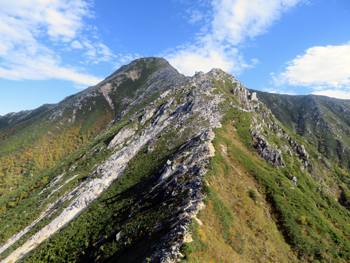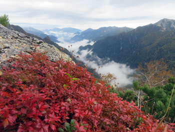 ・ 今夏は、下界は猛暑、高山は連日雷雨ぎみの天候続きのため、夏山計画延期となり、ようやく秋晴れ予報となって、紅葉も始まったとの情報を得ての山行となりました。