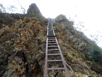 ・ 東鎌尾根:水俣乗越先の連続鉄梯子。 槍ヶ岳穂先への連続鉄梯子。