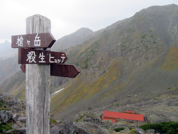 | 紅葉したミヤマキンバイの葉 | 槍沢カールからの槍ヶ岳 | 殺生ヒュッテ分岐点 |