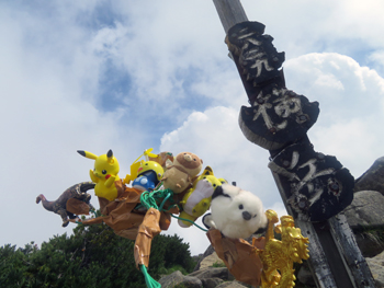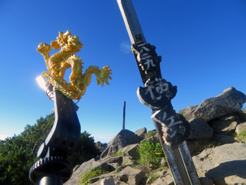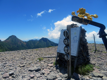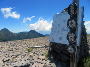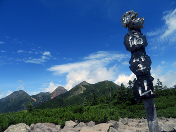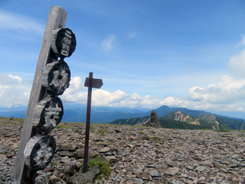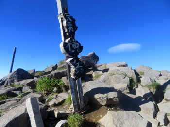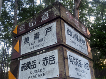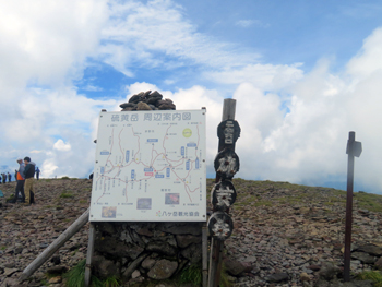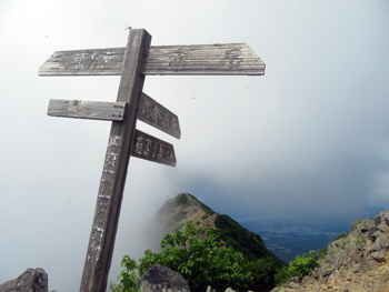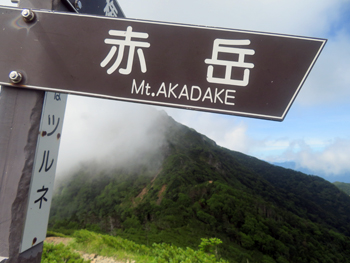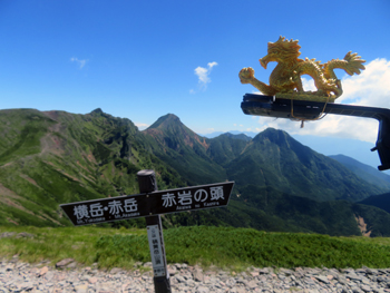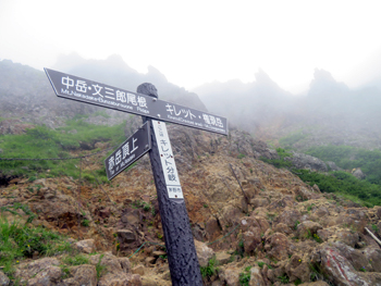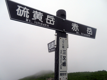 | 硫黄岳山頂標識 : 赤岳方面 | 〃 & 龍 | 赤岳 |