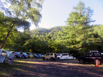 ・ 美濃戸口に駐車、二日分の駐車料金1,600円を払いチケットを車内のフロントに置き、出発。