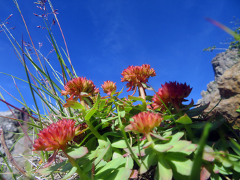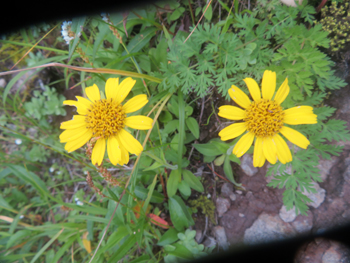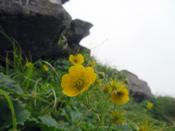 | ミヤマシオガマ(深山塩釜) 、(中岳→赤岳直下)。キバナノコマノツメ(スミレ科)。中岳→赤岳直下ミヤマキンバイ (中岳→赤岳:赤岳直下) | ||