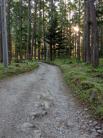 ・ やがて舗装路に出て、別荘地帯を標識に従って進み、美濃戸口に到着。