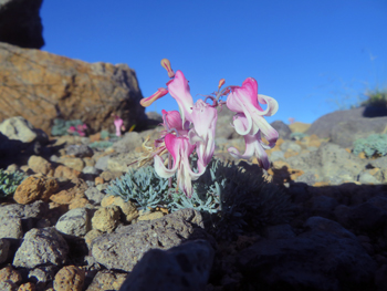 | コマクサ (中岳 → 赤岳 :中岳直下)。ミヤマシオガマ(ゴマノハグサ科)、(〃)イワウメ(イワウメ科)、(中岳→:赤岳直下) | ||