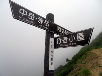 | 日帰 | 永福IC 3:20 ≫ 小淵沢IC ≫ 6:00 美濃戸:やまのこ村 6:20 → 8:10 行者小屋 8:20 → 9:10 中岳コル → 9:40 阿弥陀岳 9:55 → 10:30 中岳山頂 → 中岳道分岐 10:40 → 11:20 赤岳山頂 11:45 → 赤岳展望荘 12:25 → 13:00 横岳三又峰 13:25 → 硫黄岳山荘 13:50 → 14:05 硫黄岳 14:20 → 15:15 赤岳鉱泉 15:25 → 16:30 美濃戸:やまのこ村 16:50 ≫小淵沢IC ≫ 高井戸IC 19:30 | ||||