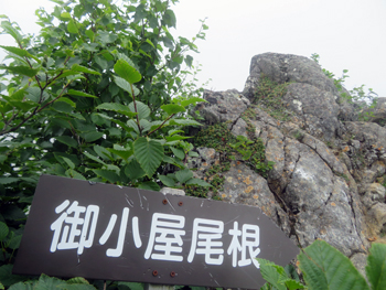 ・ ユックリ休憩後、ロープのあるザレた御小屋尾根を下る。