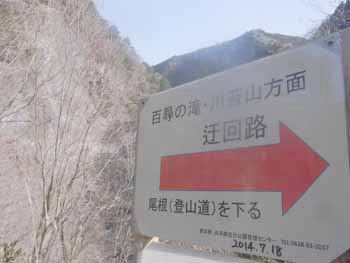 | 細倉橋は崩落のため迂回路経由 | 川苔渓谷 | 百尋の滝分岐点 |