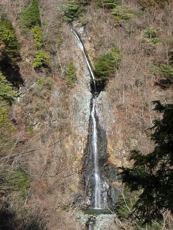 ・ 2合目の直ぐ先に不動の滝展望台があり、細長い落差100mの名滝を眺め、滝の音を聞きながら一休憩する。