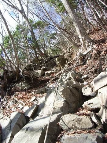 ・ 何処まで行っても雑木林の続くやや急登をひたすら登る。