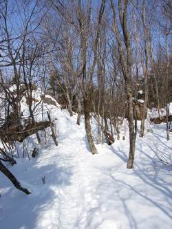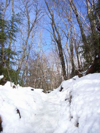 ・ 多少のアップダウンのある、柔らかい部分と堅い部分のある歩きにくい雪道を慎重に進む。