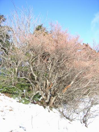 ・ 記録的な暖冬のお陰で、7合目まで積雪なく、順調に無風快晴の中、陽だまり登山を味わう。