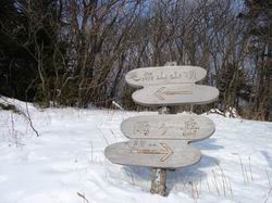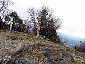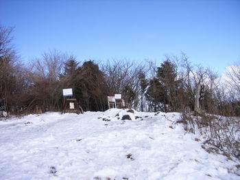 ・ 山頂は広場になっており、三角点と標識が二本建っています。