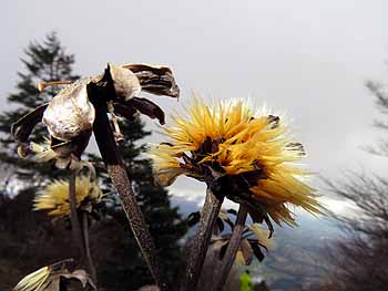 | マルバダケブキの穂 | 晴天時は展望良好 | 最高地点 ケナシ、大見岳 1,964m |