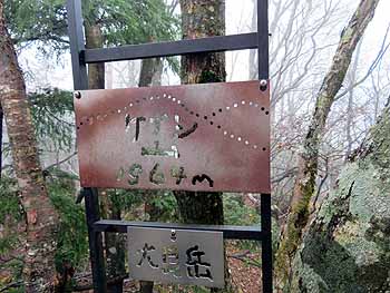・ 見ずらい金属板の標識に「ケナシ、大見岳 1,964m」とありました。