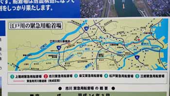 | 海から 10km 標識柱 | 江戸川緊急船着場 | 江戸川・里見公園脇 |