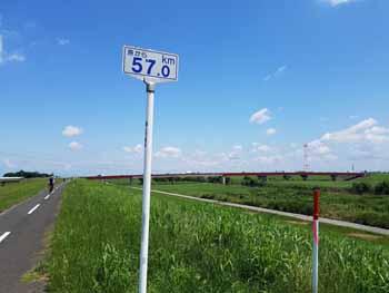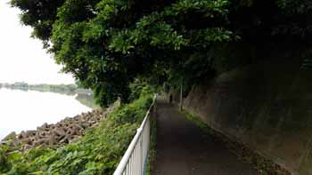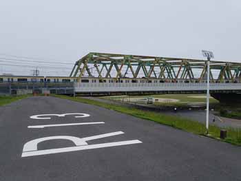 ・ 右岸も左岸同様、多摩川や荒川に比べ、通行量が非常に少なく、幅員も広く走り、工事によるう回路や土手と河川敷コースのアップダウンがほとんどなく、路面も非常に良く、走り易かった。