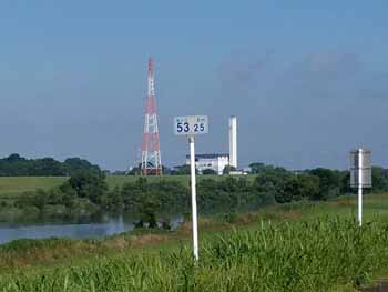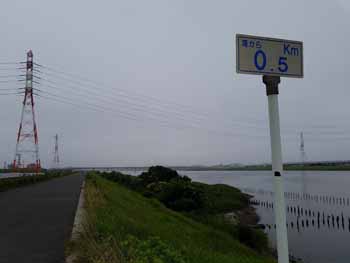 | 江戸川右岸 最先端方面(企業管理地内立入禁止)。 海から 0.5K地点 : 下流側。 〃 : 上流側 | ||