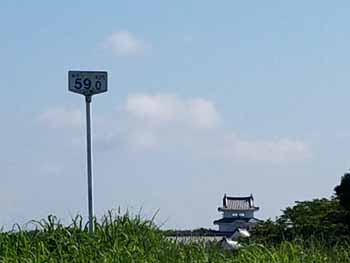 | SR・関宿城分岐 | ガクアジサイ 海から 59.5km 標識、この直ぐ先、利根川右岸 | |