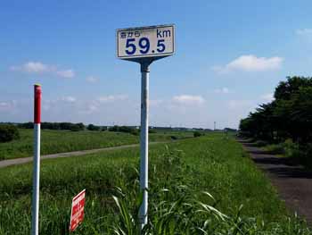 ・ 利根川との分流点傍にある距離表示は、海から59.5Kmでした。