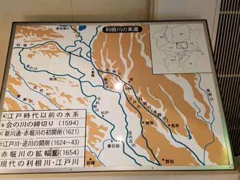 江戸初期、利根川を鬼怒川・常陸川に付け替えて銚子に流し、新たに運河を掘って旧利根川(太日川)につないで分流。