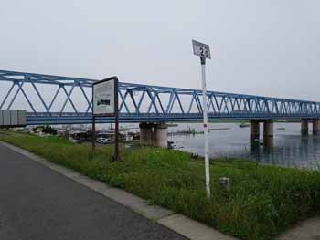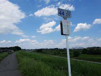 | 右岸: 海から 44.25km 標識 | 野田線鉄橋 | 海から 45km 標識柱 |