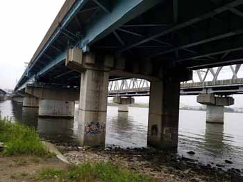 | 海から 0.75km 標識 | 東西線 鉄橋 | 海から 2.5km 標識 |