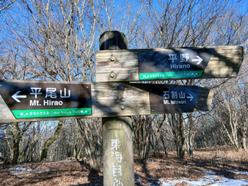 | 石割山 → 平尾山 平野への分岐地点 | 平尾山 山頂 | 大平山 分岐 |