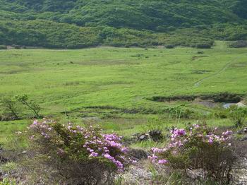 | ミヤマキリシマ | ハルリンドウ | 坊ガツル→法華温泉: 平治岳方向 |