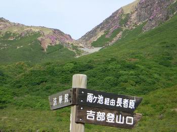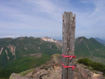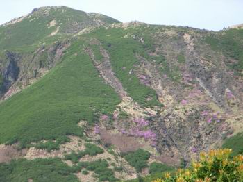 ・ 以前はミヤマキリシマが山一面に咲いてましたが、近年虫害で年々少なくなり、茶色く枯れたミヤマキリシマがみられる。