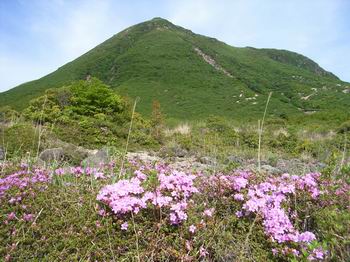 ・ 山頂一帯にミヤマキリシマの大群落(国指定天然記念物)があり、5月下旬から6月の開花期に美観を呈する。
