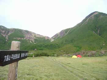 ・ 鳴子川を渡ると、坊ガツルのキャンプサイトで九重連山登山の宿営地としても知られ、平日にもかかわらず3張設営されていました。