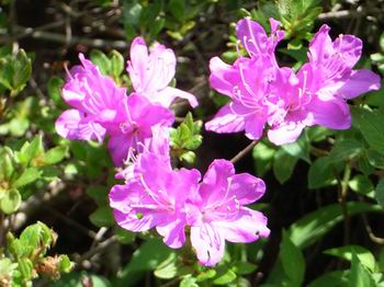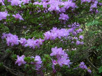 ・ 1m程度の低木で、花期は概ね5月下旬から6月中旬。枝先に2-3個ずつ紫紅色の花をつけるが、桃色、薄紅色の花も見られる。ちなみに、気候が似通った秋にも少し咲くことがある。