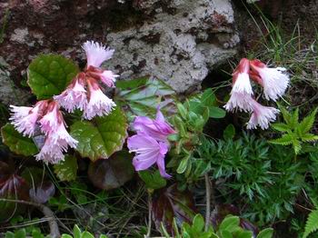 | 坊ガツルキャンプ場 | 段原にて: ミヤマキリシマ | 段原にて: イワカガミ |