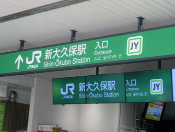 16 新大久保 1.4 改札1つ 改札出て右側すぐ 1m柱裏側 (中程)