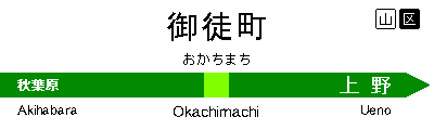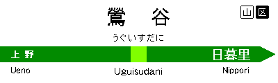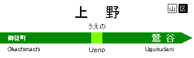 上野駅 不忍口  〃  〃 :公園口  上野  → 鶯谷 : λ ロケット 発射台