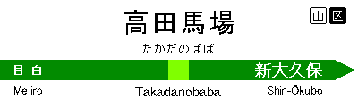 17 高田馬場 0.9 早稲田口改札 改札出て正面 10m (池袋寄)
