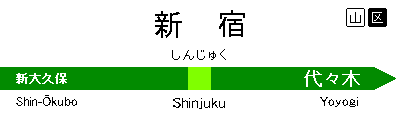 16.新大久保 17.新宿 18.代々木 19.原宿 20.渋谷