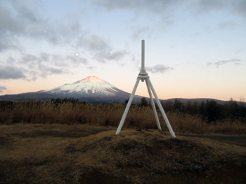 | 2012(H24). 1.11 御殿場にて 〜 朝パール (月齢 17.2日 輝面比97%) 日の出 ≒6:54 月没 ≒7:54 富士山月没 ≒ 6:55 | ||