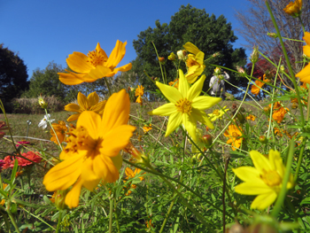 | ヤマブキ | 花壇 パンジー、水仙 | 皆の原っぱ : 大ケヤキ |